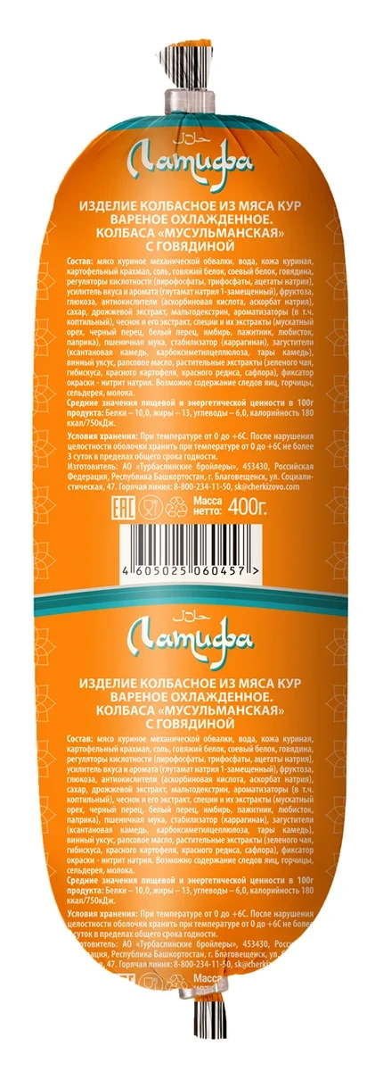 Колбаса Латифа Халяль Мусульманская с говядиной вареная, 400г