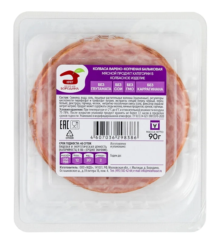 Колбаса Мясной дом Бородина Балыковая варено-копченая нарезка, 90г