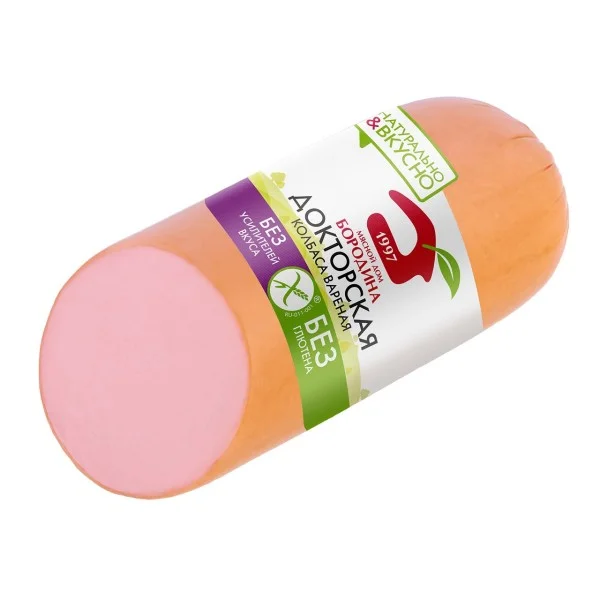 Колбаса Мясной дом Бородина Докторская – классическая рецептура и отборные ингредиенты для высококачественного и популярного продукта. Докторская колбаса – это идеальный вариант для приготовления бутербродов к завтраку, разнообразных салатов, выпечки и супов. Она готовится на основе мяса высшего сорта без добавления соевых продуктов, а также без использования усилителей вкуса, ГМО и прочих вредных компонентов. Продукт имеет насыщенный вкус и приятный аромат пряных специй.