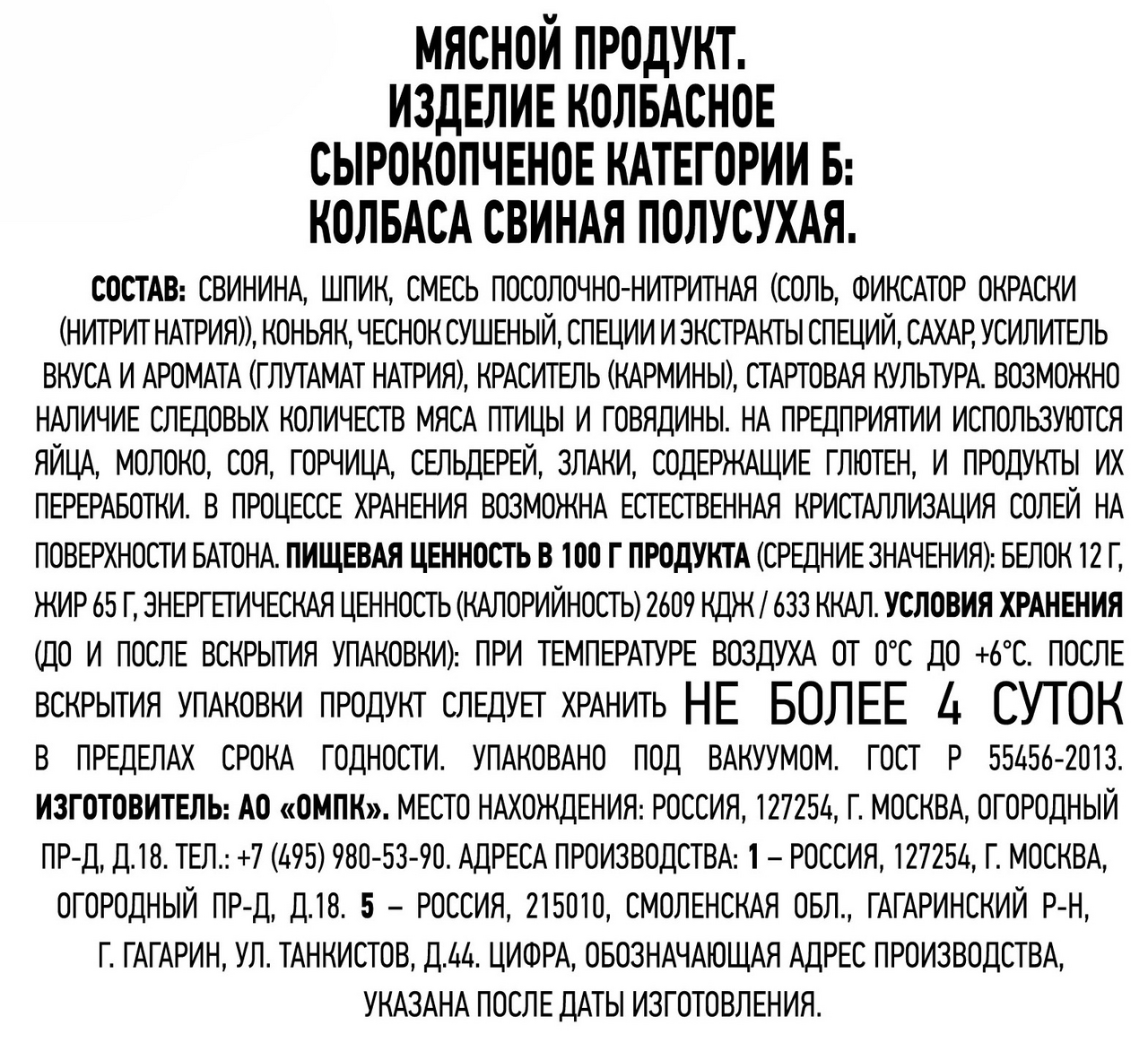 | Тип | колбаса |