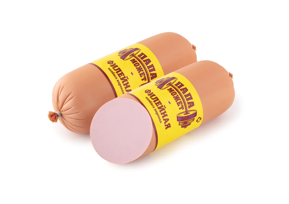 Колбаса Папа может Филейная вареная 500г приготовлена по оригинальной рецептуре Останкинского мясоперерабатывающего завода из филе куриных грудок, мяса птицы и говядины с добавлением ароматных пряностей: мускатного ореха, семян горчицы и сельдерея. Срез однородный, нежного розового цвета.