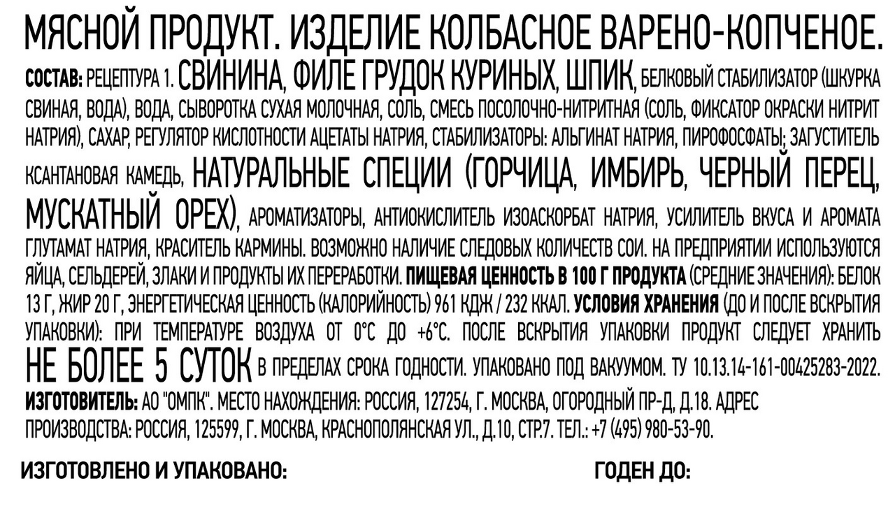 | Стандарт производства | ту 10.13.14-161-00425283-2022 |