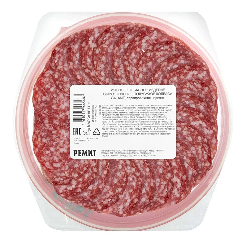 Колбаса Ремит Salame сырокопченая нарезка, 80г