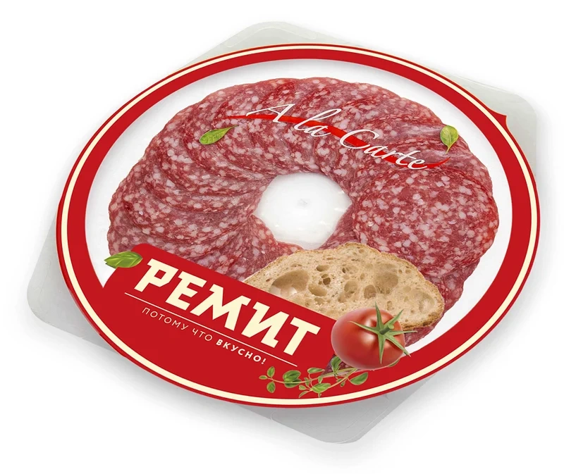 В промышленном масштабе профессионально нарезали, красиво уложили и надежно упаковали вкусную колбаску. Привлекательный формат - эксклюзивная упаковка в форме сервировочной тарелки очень удобна, открывается легко, смотрится красиво. На выездных мероприятиях можно красиво сервировать стол, не вынимая из упаковки, дома легко переложить на красивое блюдо, украсить оливками или кубиками сыра - изысканно, вкусно и просто. Продукт можно использовать в качестве самостоятельной закуски, а также для приготовления бутербродов и сэндвичей.