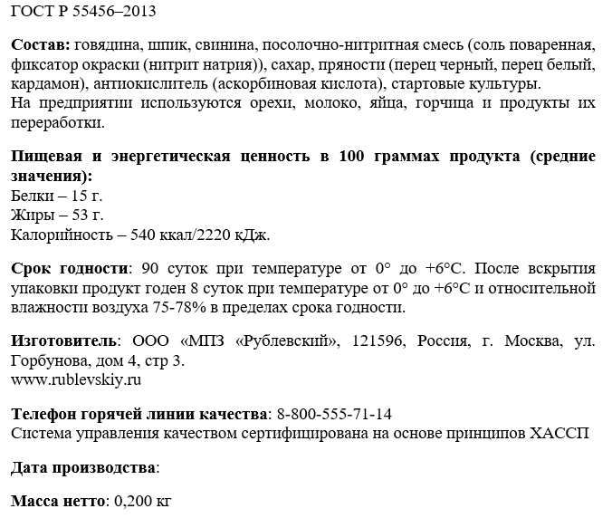 | Тип | колбаса |
