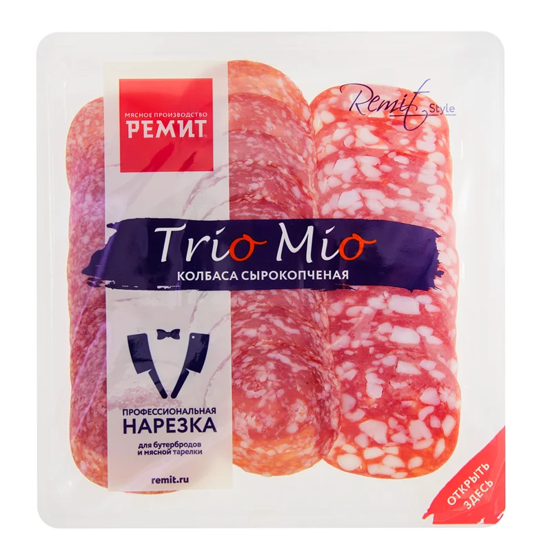 Колбаса Trio Mio ассорти сырокопченое нарезка, 100г