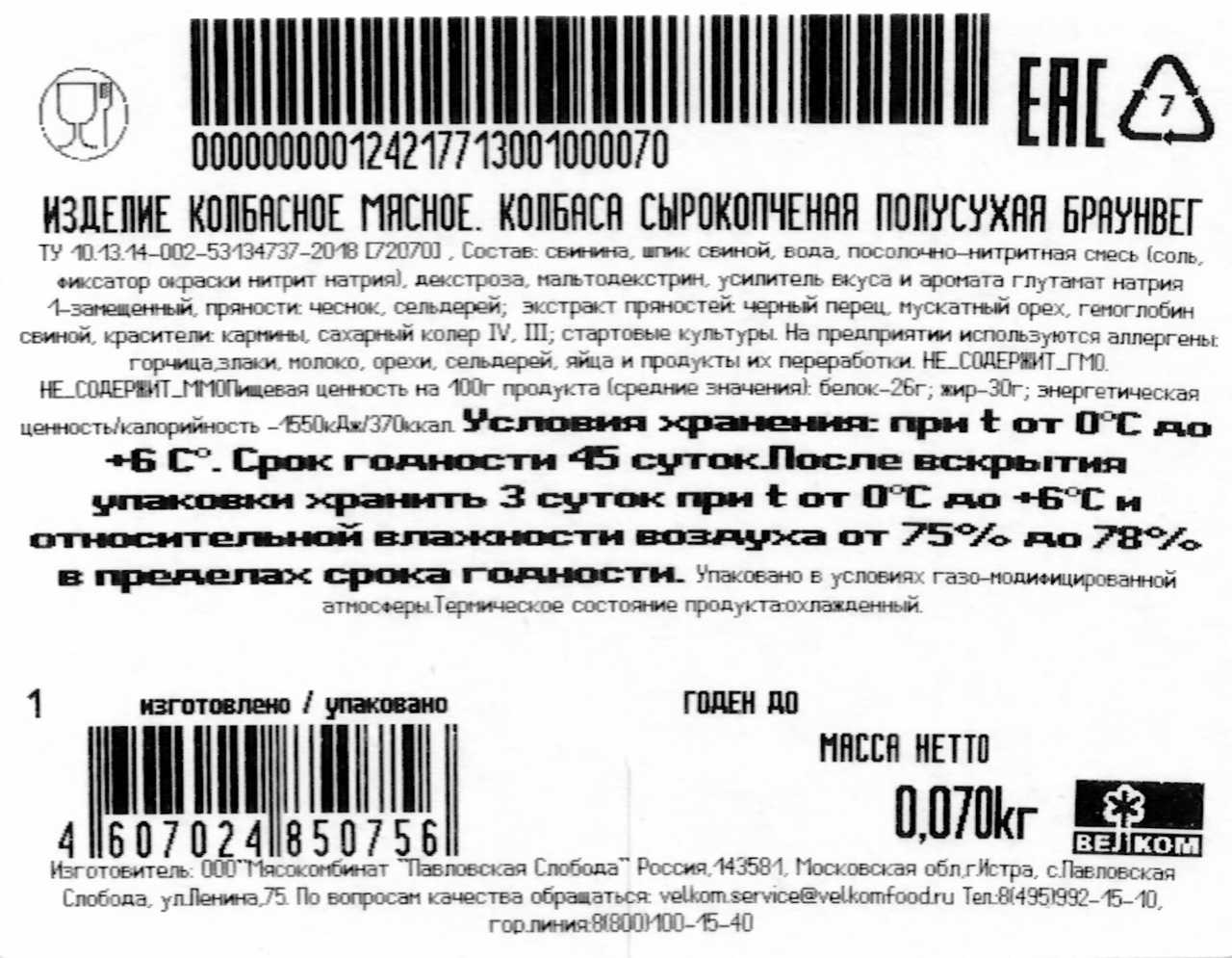 | Стандарт производства | ту 10.13.14-002-53134737-2018 |