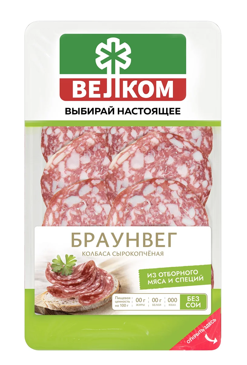 Колбаса Велком Брауншвейгская сырокопченая нарезка, 70г