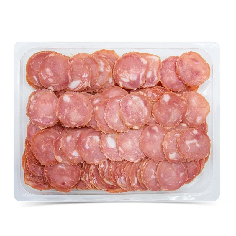Изготовлена из крупно рубленной нежирной свинины с добавлением пикантной грудинки. Индивидуально подобранный букет специй и пряностей придает благородный вкус. Красивый, аппетитный срез подчеркивает изысканность деликатеса. Продукт отлично подходит для диетического и разгрузочного питания, так как состоит из филе.