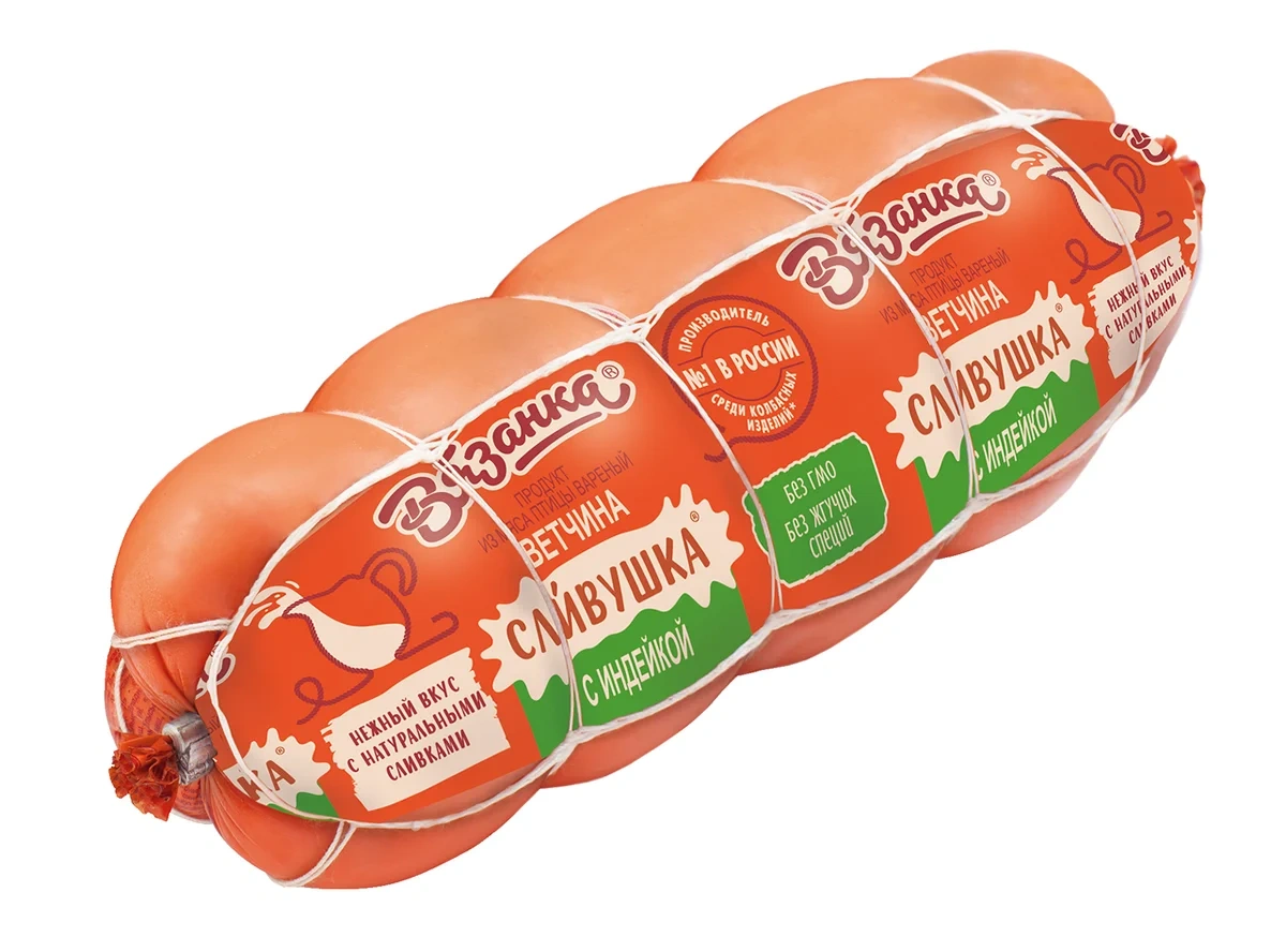 Ветчина Сливушка с индейкой изготовлена из натуральных мясных ингредиентов - филе индейки, курицы и свинины с добавлением натуральных сливок ГОСТ, что отвечает современным требованиям здорового питания. Индейка является диетическим мясным продуктом, который полезен, так как содержит необходимые питательные вещества для здоровья всей семьи. Увеличенный срок годности продукта (50 суток) достигнут за счет подбора оптимальных упаковочных материалов в сочетании с термической программой обработки, которая позволяет дольше сохранять свежесть продукта. Изготовлен без СОИ и без ГМО. Плотная консистенция, аппетитный аромат и насыщенный вкус продукта отлично дополнят салаты и закуски, которые займут почетное место на любом столе. Из него можно готовить не только праздничные блюда, но и самые что ни на есть повседневные.