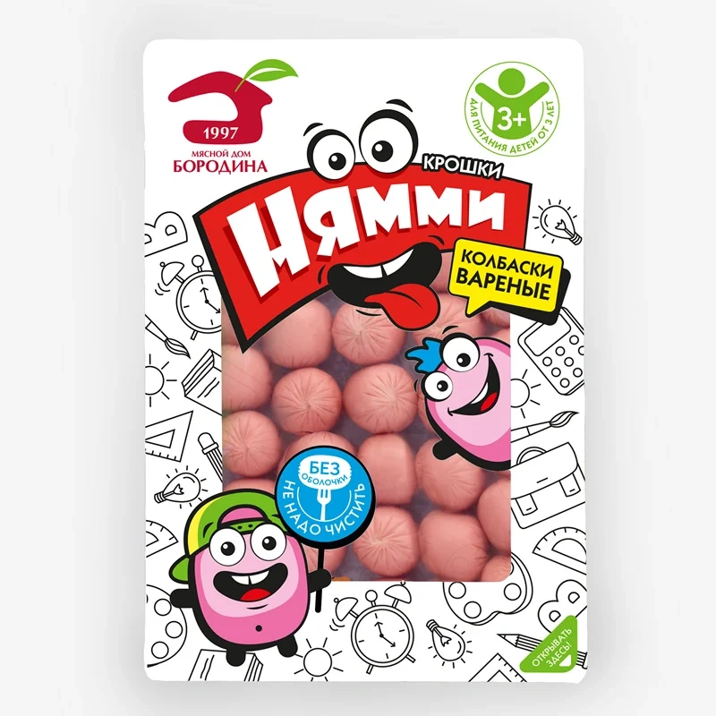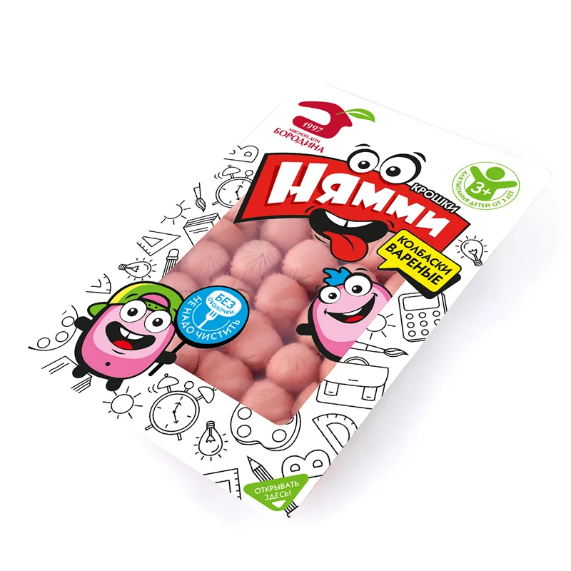 Колбаски Мясной дом Бородина вареные Крошка Нямми, 240г созданы специально для детей. Питательный мясной продукт приготовлен из натуральной свинины, говядины и мяса птицы. Колбаски не содержат усилителей вкуса, сои и ГМО. Продукт прекрасно утоляет голод, заряжая ребенка энергией. Аккуратные колбаски округлой формы находятся в специальной полиэтиленовой упаковке. Продукт сочетается с различными гарнирами и не требует варки.