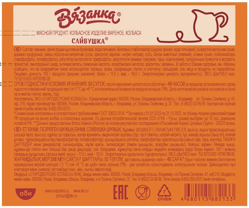 Колбаса Вязанка Сливушка вареная, ~1.35кг
