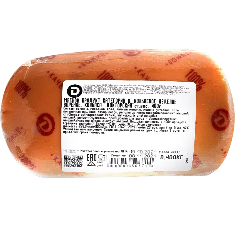 Колбаса Дымов Докторская вареная ГОСТ, 400г