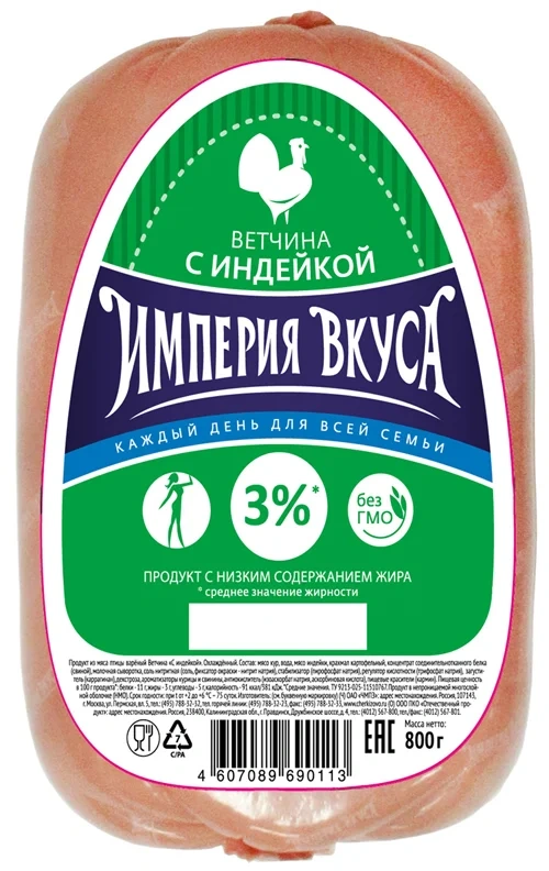 Ветчина Империя Вкуса с индейкой вареная, 800г