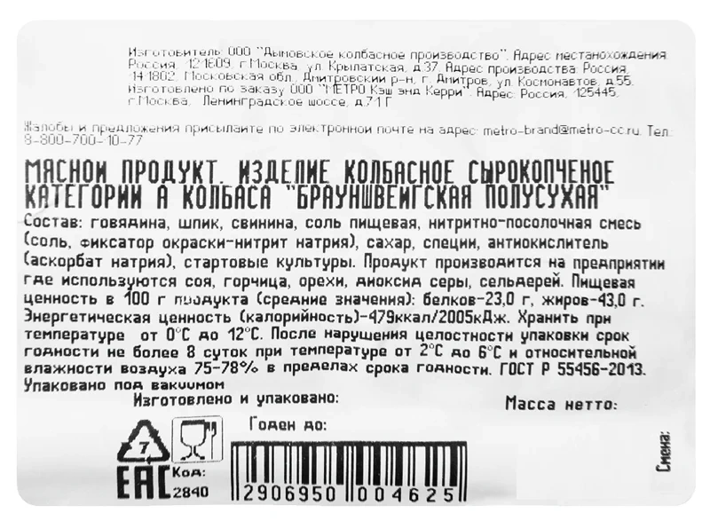Fine Life Колбаса Брауншвейгская полусухая сырокопченая, ~500г