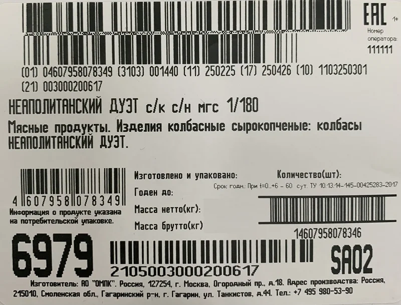 Нарезка Останкино Неаполитанский дуэт сырокопченая, 180г