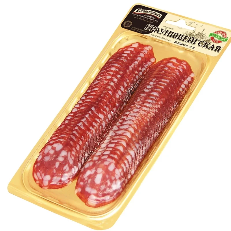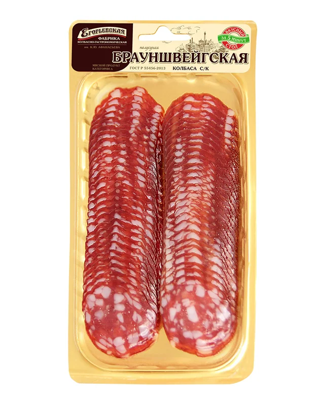 Колбаса Егорьевская фабрика Брауншвейгская сырокопченая нарезка, 100г