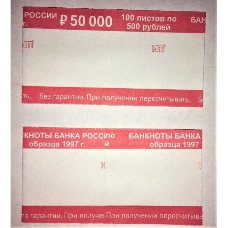 Бандерольное кольцо нового образца служит для формирования корешка — пачки из 100 банкнот номиналом 500 рублей. Купюры прочно удерживаются за счет специально подобранного диаметра. Лента отпечатана в соответствии с регламентом Банка России и предварительно склеена типографским способом. Бандерольное кольцо подходит для приходной кассы, удобно в обращении, практично. Поставляется упаковками по 500 штук.