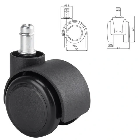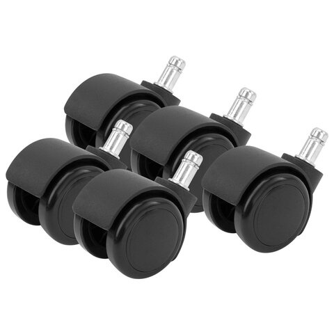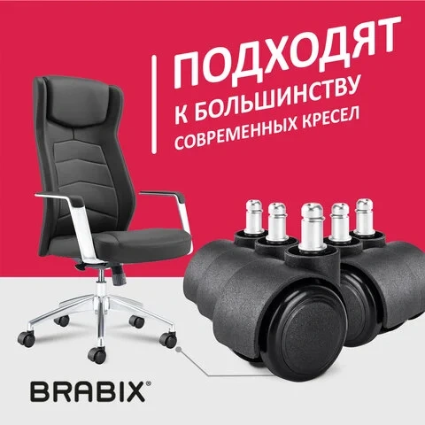 Колеса (ролики) BRABIX для кресла, прорезиненные, SLIM, КОМПЛЕКТ 5 шт., шток d 11 мм, черные, 533084
