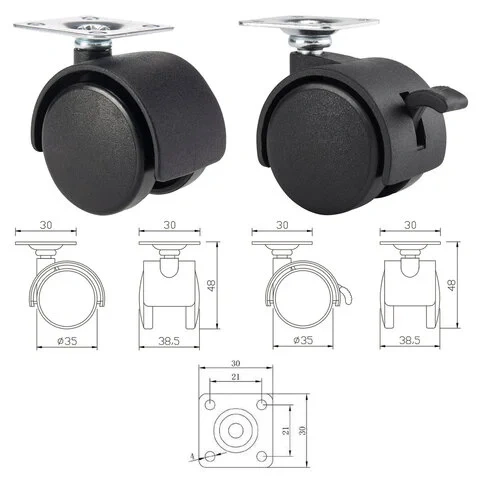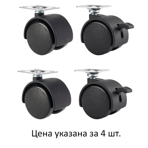 Колеса (ролики) для мебели, пластиковые d 35 мм, КОМПЛЕКТ 4 шт., черные, в пакете, WBZ (ВБЗ), 533090