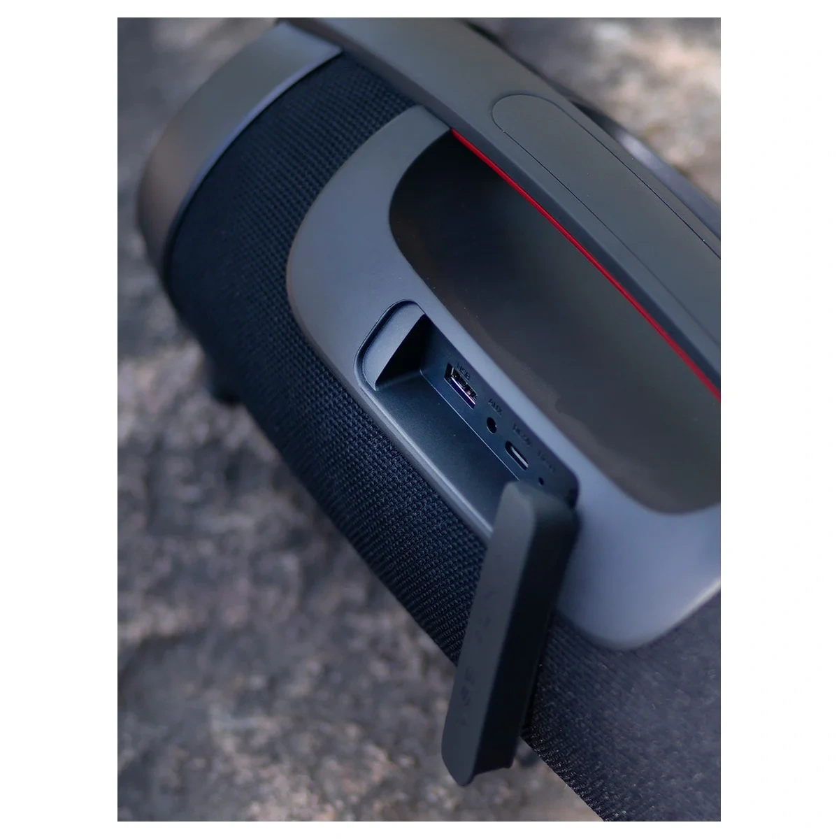 COMMANDER - мощное решения для очень нескромной вечеринки. Явный уклон в нижние частоты - отличительная особенность этого мощного бум бокса. Трендовый матерчатый корпус. Защита IPX5 - от струй воды со всех направлений - все порты и разъемы находятся за резиновой крышкой-кофром. Управляемая динамическая RGB-подсветка. Встроенный радиоприемник позволяет настраиваться на нужные волны и наслаждаться музыкой и новостями без лишних усилий. Колонка также оснащена USB-портом, что делает ее универсальным устройством для проигрывания музыки. Просто подключите флешку или другие USB-устройства и наслаждайтесь вашими композициями в любое время, даже без подключения к Bluetooth.