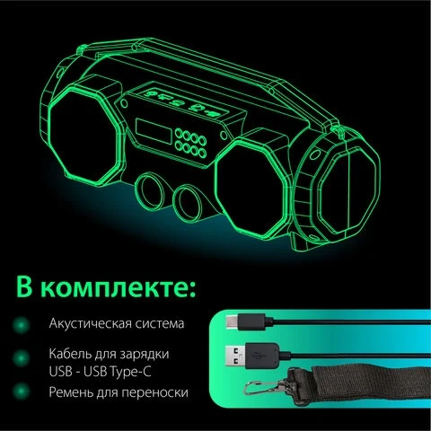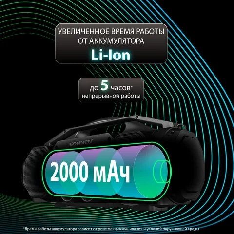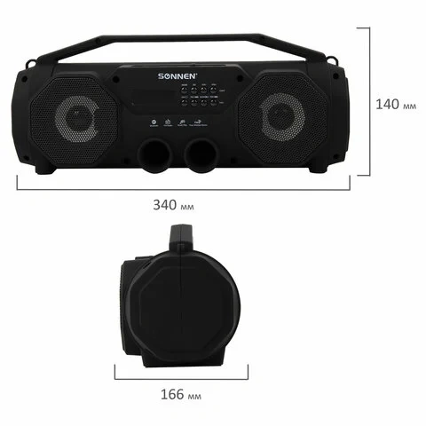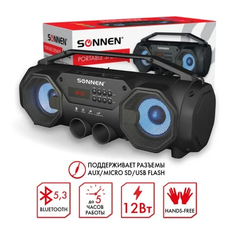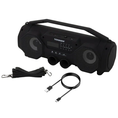 Колонка портативная SONNEN B306, 12 Вт, Bluetooth, FM-тюнер, microSD, MP3-плеер, черная, 513479