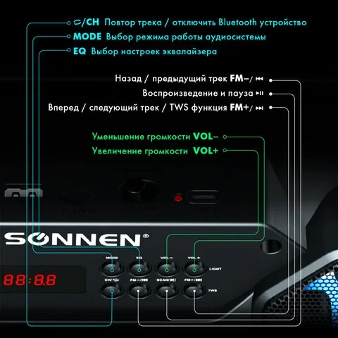 Портативная колонка SONNEN B306 имеет динамики мощностью 12 Вт.