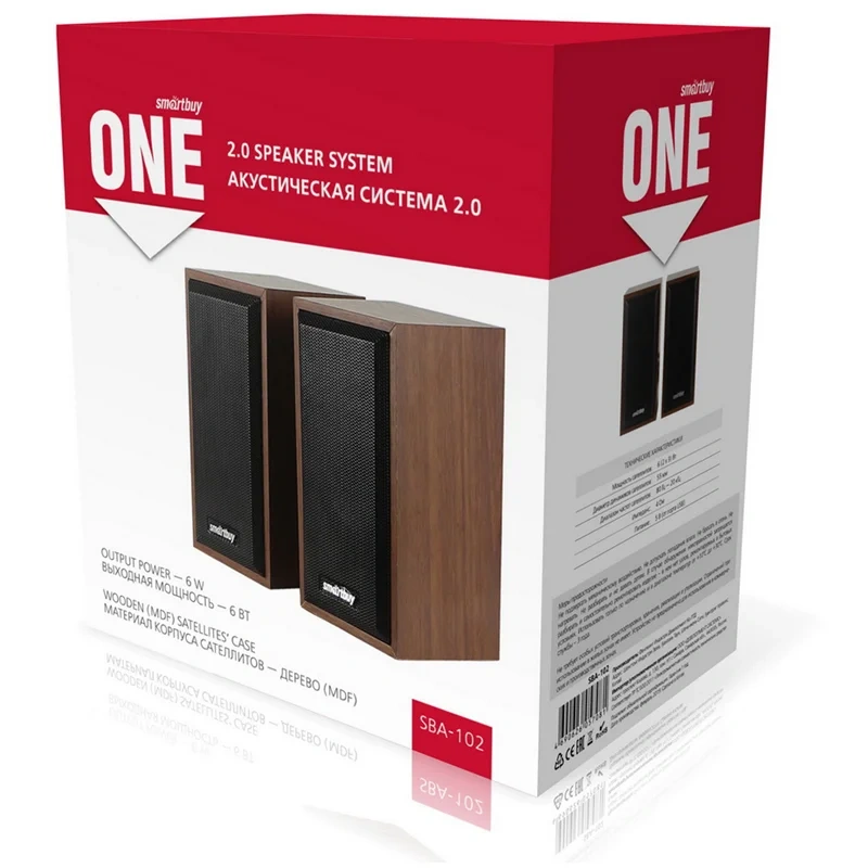 Колонки Smartbuy ONE, 2*3W, деревянный корпус, питание от USB, коричневый