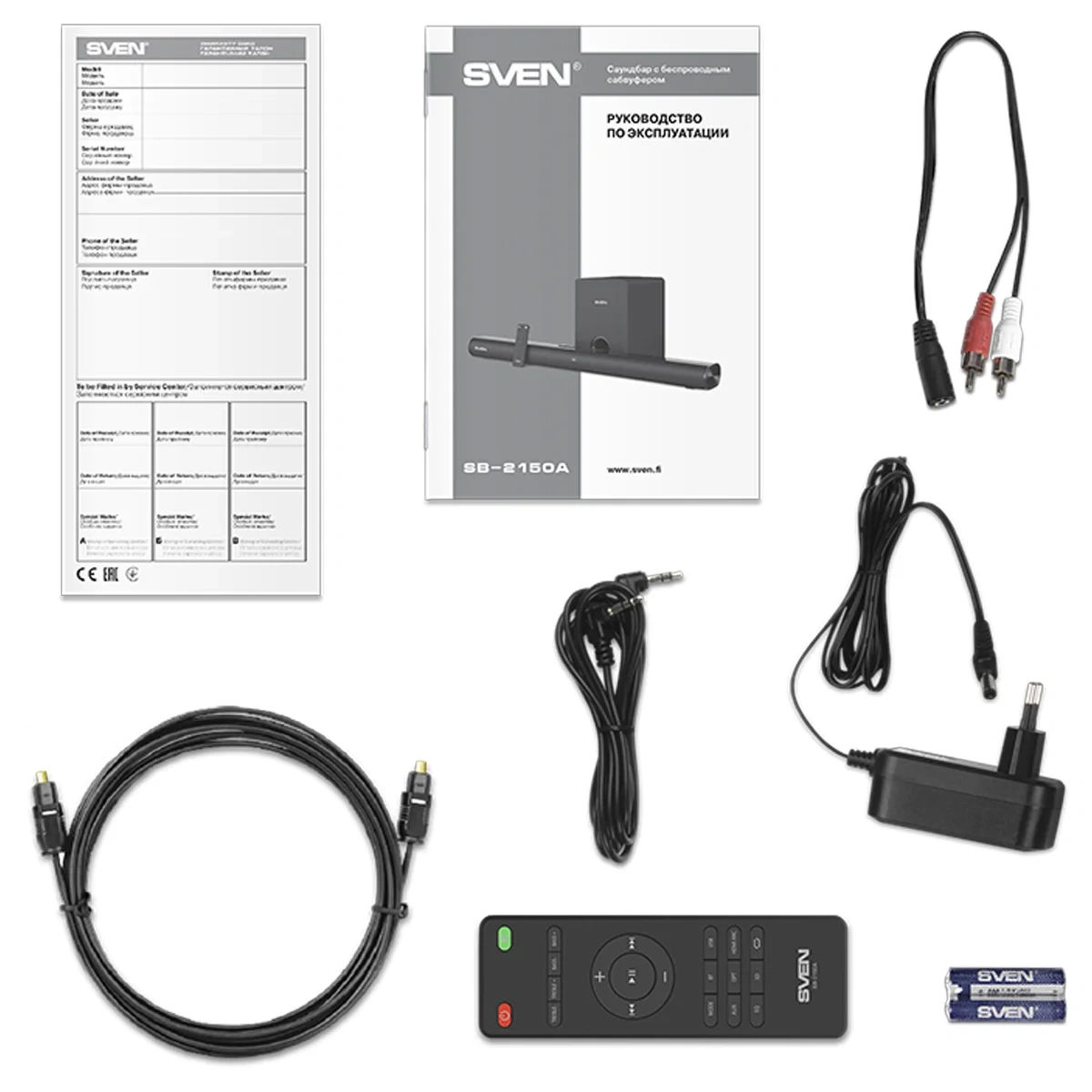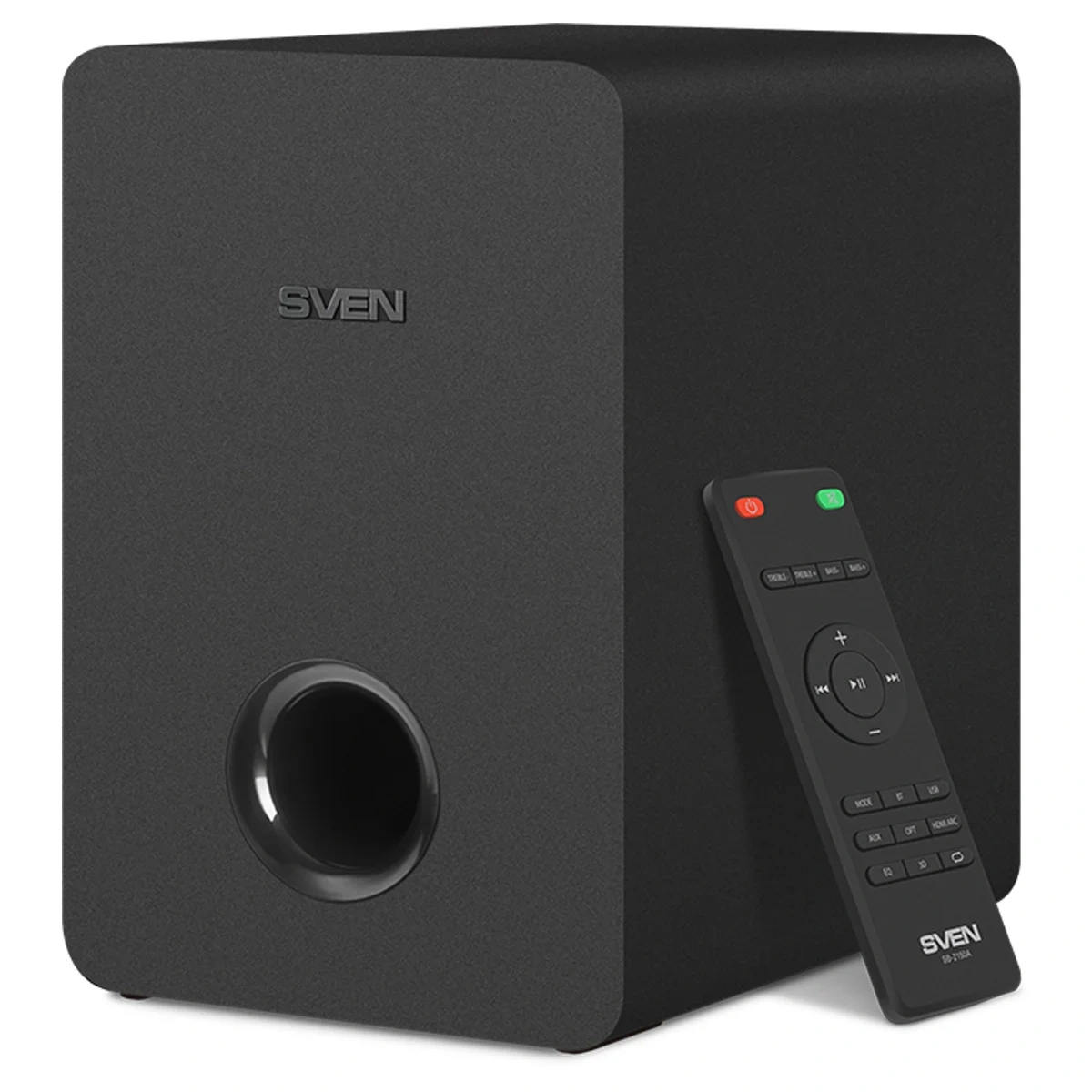 Создатели SVEN SB-2150A позаботились о том, чтобы использовать его было легко и приятно. Вся информация о работе отображается на LED-дисплее, управление осуществляется с помощью пульта ДУ. Не возникнет никаких проблем и с размещением комплекта. Сабвуфер оснащен беспроводным подключением, а саундбар может быть как установлен на полку рядом с телевизором, так и размещен на стене — все крепежные элементы есть в комплекте. Необходимые кабели пользователь также найдет в коробке с SVEN SB-2150A — дополнительно приобретать ничего не придется.