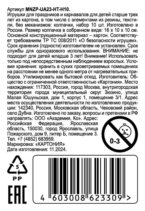 Выполнен из картона ярких цветов. Имеет резинку для надежного крепления на подбородке. Порадуйте себя и родных, дарите подарки и хорошее настроение. Почувствуйте волшебные минуты ожидания праздника, создайте праздничное настроение вашим дорогим и близким. Колпачки изготовлены из плотного мелованного картона, держатся на голове при помощи резинки. Колпачки для праздника подходят для тематической фотосессии - яркие и памятные фотографии будут напоминать о веселом празднике и вызывать улыбки.