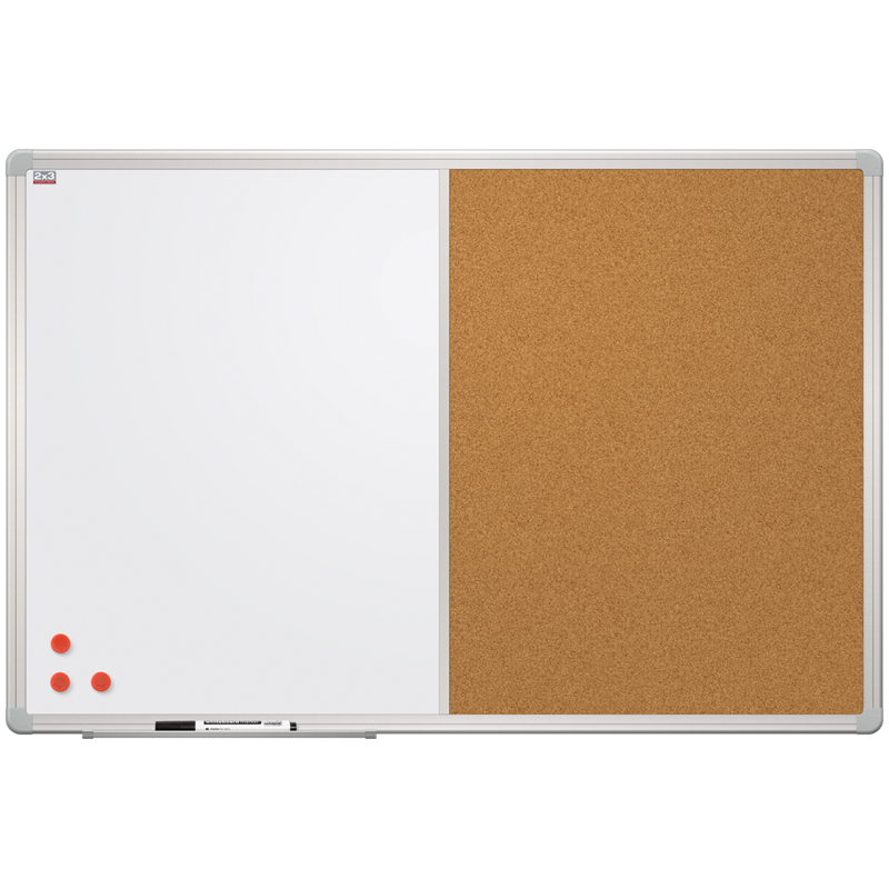 Комбинированная доска 2x3 Office 90х120см, белая/коричневая, пробковая/магнитно-маркерная, алюминиев