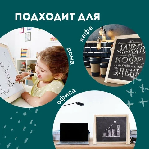 Доска маркерная Пифагор 35х41см, белая/черная, двусторонняя, деревянная рама