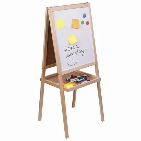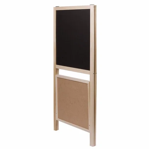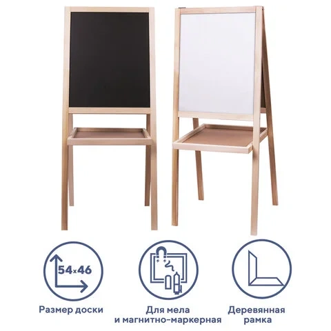 - двустронняя: первая рабочая белая поверхность для письма специальными маркерами, вторая рабочая чёрная поверхность для письма мелом;