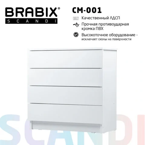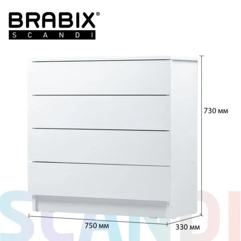 Комод Brabix Scandi CM-001 750х330х730мм, белый, 4 ящика, ЛДСП