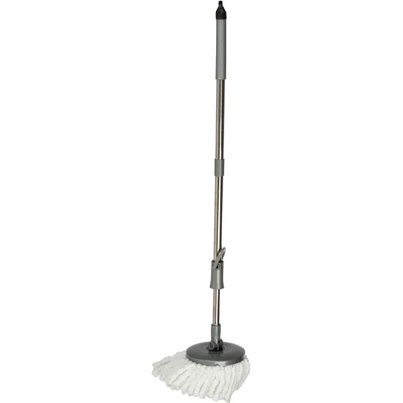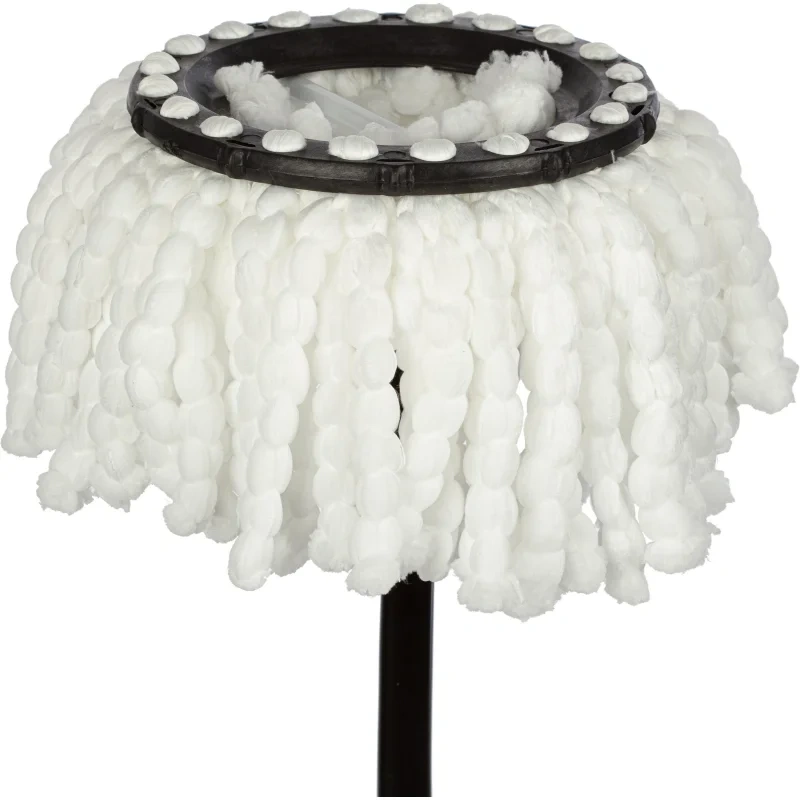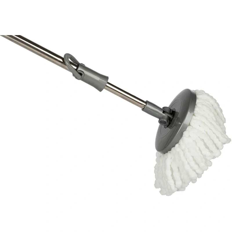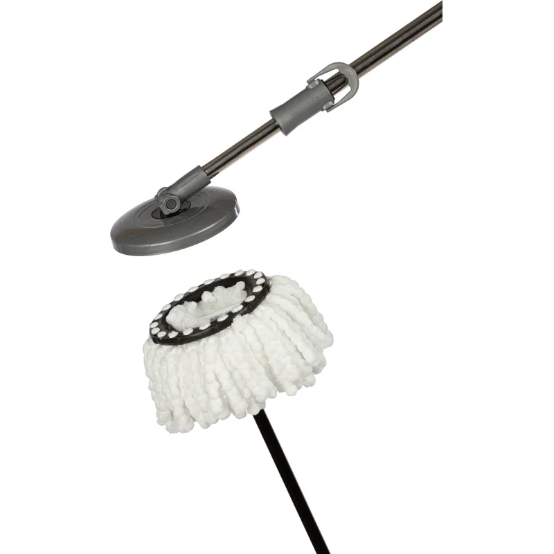 Держатель имеет поворотный механизм для удобства уборки стен и потолков. Для удобства захвата МОП оснащен педалью. Материал держателя — пластик. Размер держателя (ДxШ) — 16×16 см. Рукоятка телескопическая, длиной от 87 до 104 см. Материал рукоятки — алюминий. МОП может использоваться как в сухом, так и во влажном виде. Имеет цветовую кодировку для разграничения зон уборки. Размер насадки (ДxШ) — 16×16 см, материал насадки (МОП) — микроволокно. Насадку можно стирать в стиральной машинке при низких температурах и без использования кондиционера.
