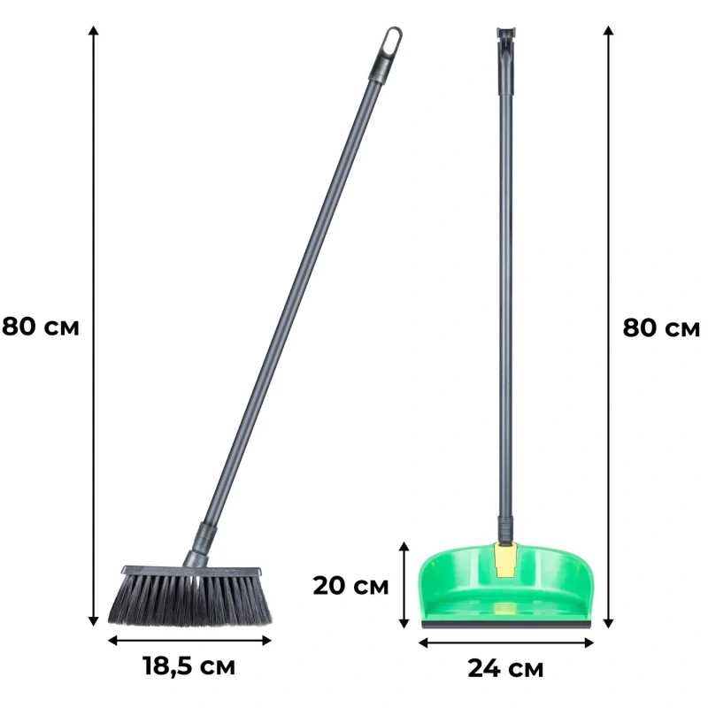Совок и ручка щетки изготовлены из ударопрочного пластика.
