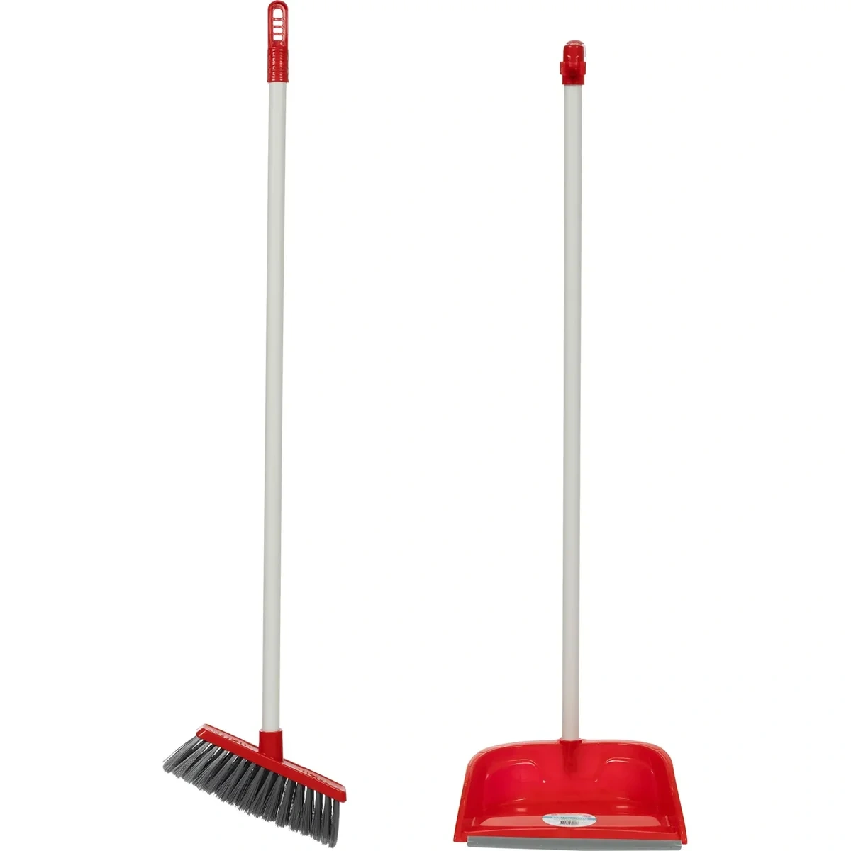 Комплект для уборки совок с щеткой для пола AF201-R, длинный ворс, красный