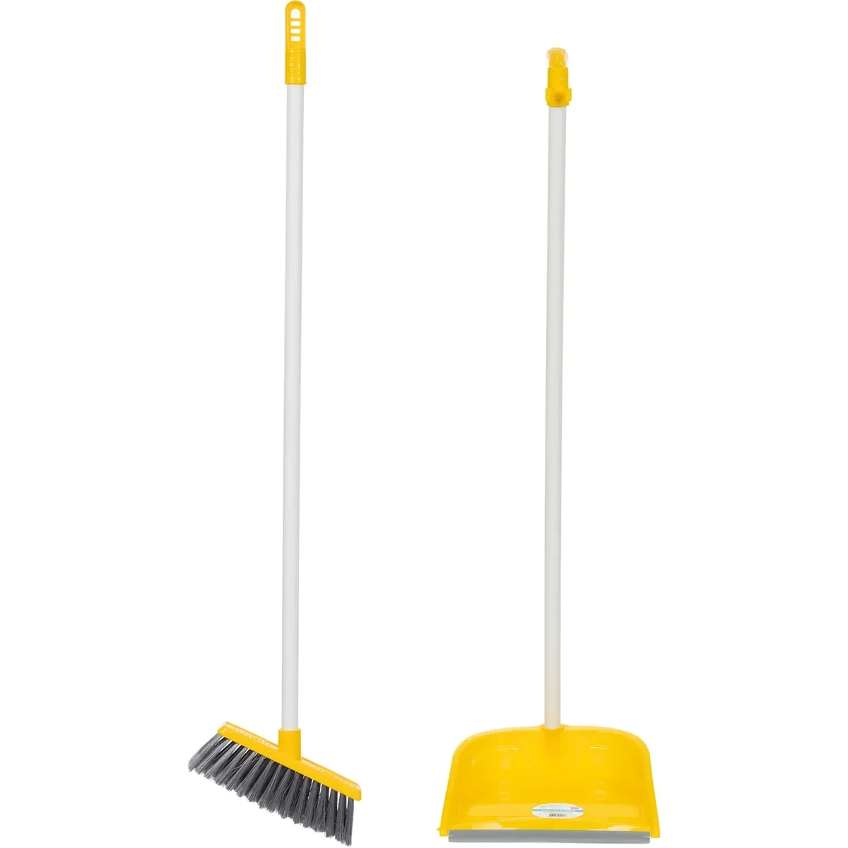Комплект для уборки совок с щеткой для пола AF201-Y, длинный ворс, желтый