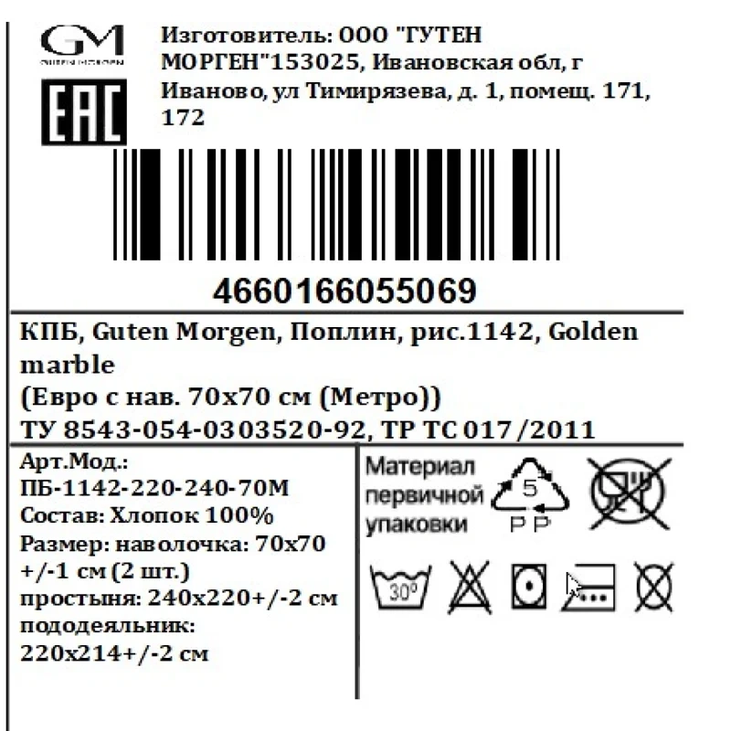 Комплект постельного белья Guten Morgen Golden Marble из поплина евро