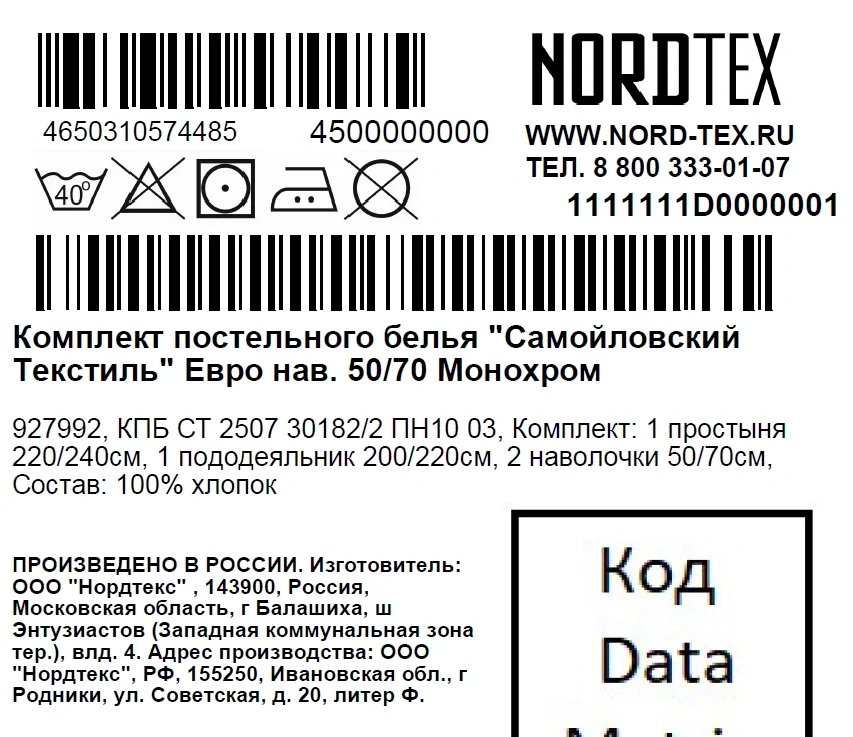 | Комплектация | наволочка - 2 шт. 50х70см; пододеяльник - 1 шт. 200х220см; простыня - 1 шт. 220х240см |