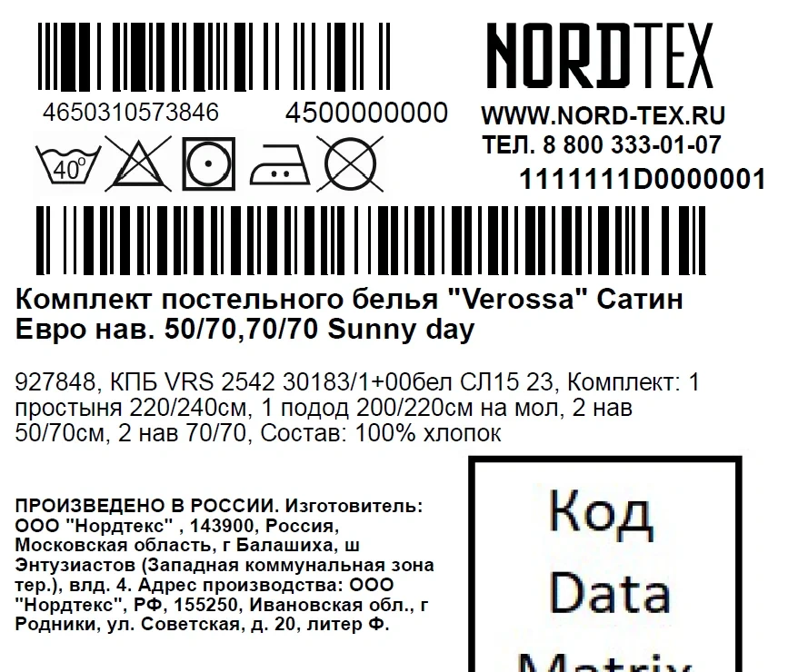 | Комплектация | наволочка - 2 шт. 50х70см; наволочка - 2 шт. 70х70см; пододеяльник - 1 шт. 200х220см; простыня - 1 ш |