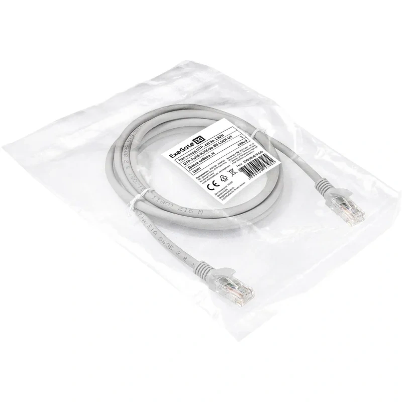 Патч-корд ExeGate UTP-RJ45-RJ45-5e-2M-LSZH-GY, cat.5e, 2м,сер <EX286383RUS