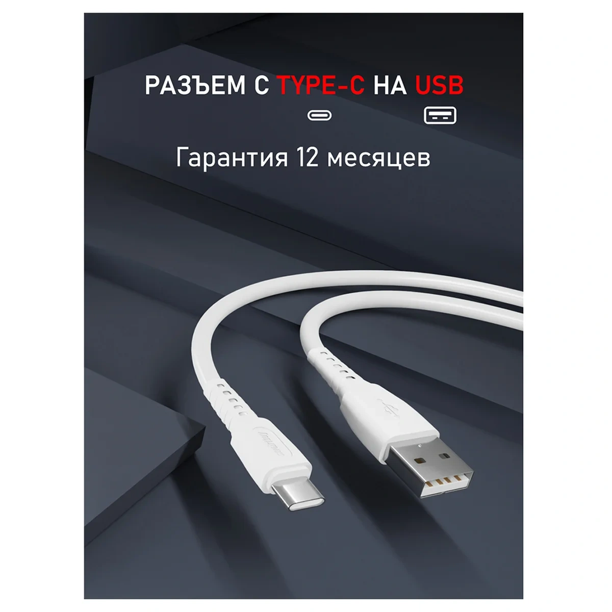 Кабель Smartbuy iK-3112, USB2.0 (A) - Type C, 2A output, 1м, белый, белый