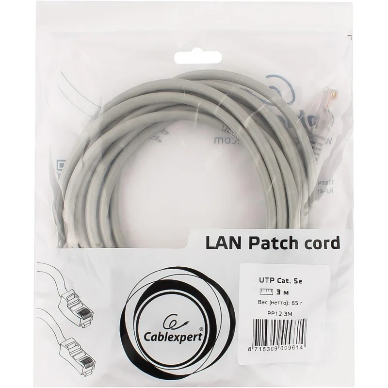 Патч-корд UTP Cablexpert PP12-3M кат.5e, 3м, серый