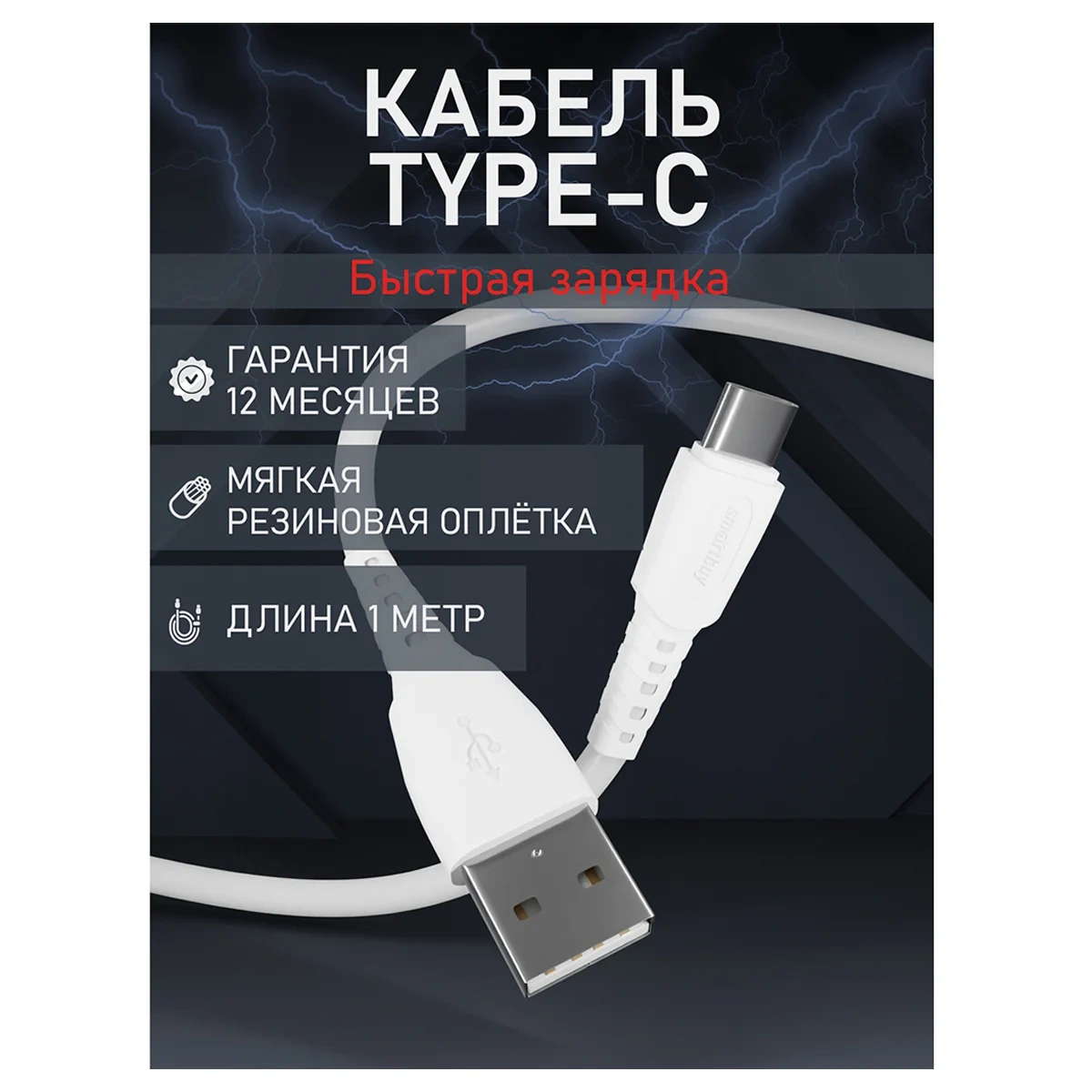 Кабель Smartbuy S40, USB - Type-C, 3A output, 1м, белый