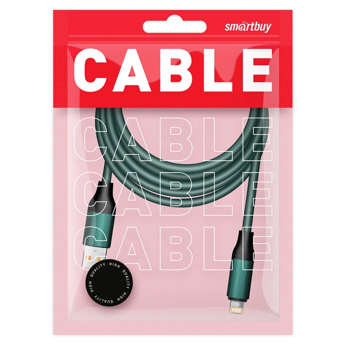 Кабель Smartbuy Bold, USB - Lightning, для Apple, экстрапрочный, 3A output, оплетка TPE, 1м, мятный