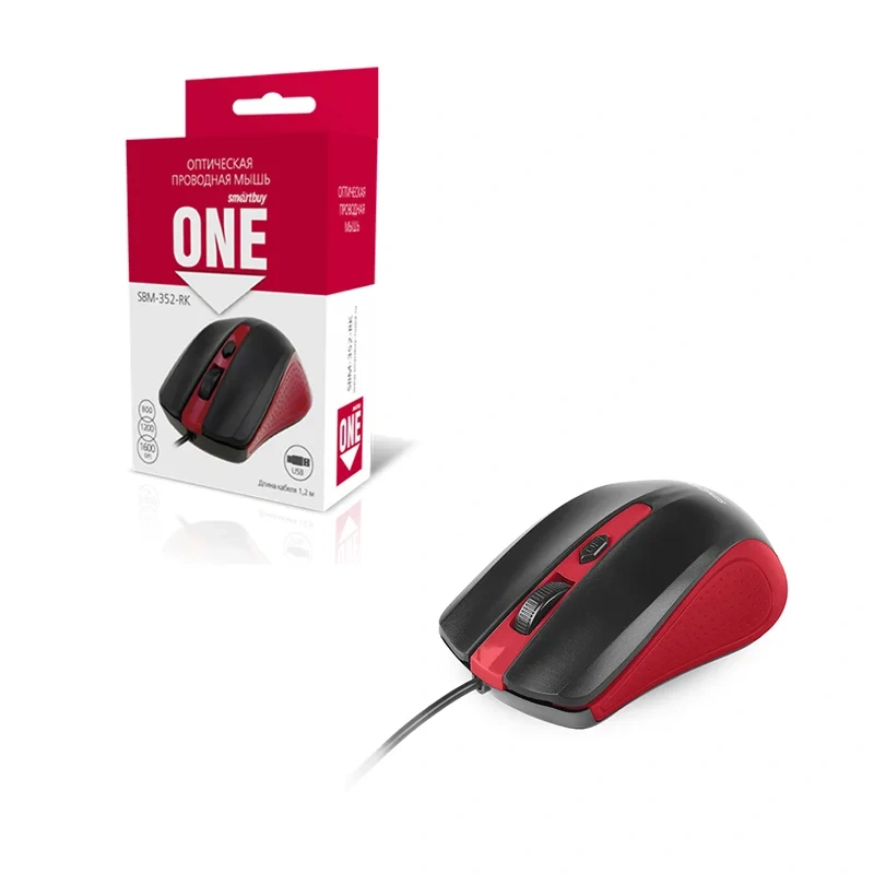 Мышь Smartbuy ONE 352, USB, красный, черный, 3btn+Roll