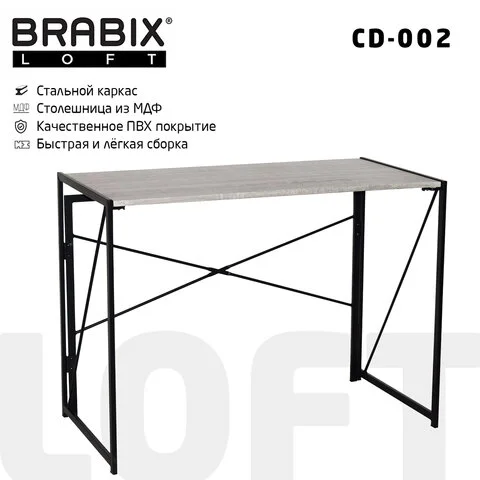 Стол на металлокаркасе BRABIX 'LOFT CD-002', 1000х500х750 мм, складной, цвет дуб антик, 641213