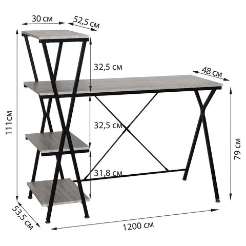 Стол на металлокаркасе BRABIX 'LOFT CD-004', 1200х535х1110 мм, 3 полки, цвет дуб антик, 641219
