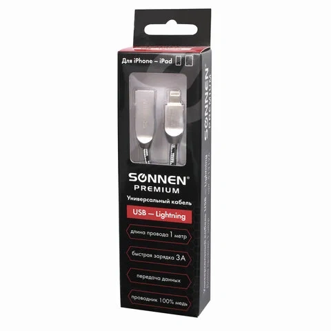 Кабель USB 2.0 Sonnen Premium Lightning, 1м, передача данных и быстрая зарядка
